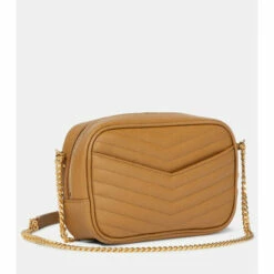 Updated in timeless camel-brown calfskin, Saint Laurent’s latest take on its beloved Lou silhouette marries timeless style with modern appeal. The compact design is framed with a chain-link strap and features a gleaming gold YSL logo at the front.