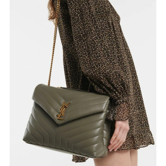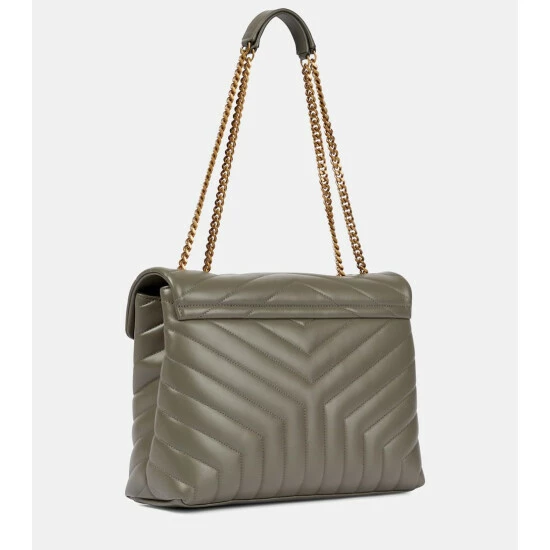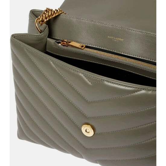 Designed in tribute to one of Saint Laurent’s muses, the grey Loulou Medum shoulder bag has gone on to become a style icon itself. The house uses unique tanning and paper-printing processes to give the leather a soft feel and a full-grain look, and adds a specially designed airy foam to create the signature quilting. This design is finished with metallic hardware, including the iconic YSL monogram.