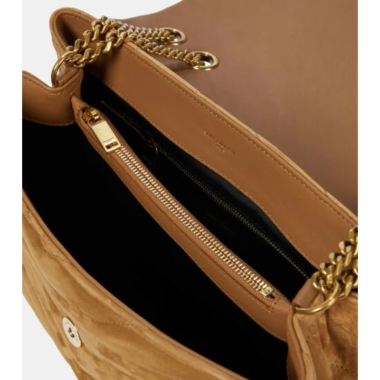Bring Parisian panache to any look with one of Saint Laurent’s best-loved bags: the Loulou Medium, presented here in beige. Unique tanning and treatment processes are used to give the suede a soft feel, and a specially designed foam is added to create soft quilting.