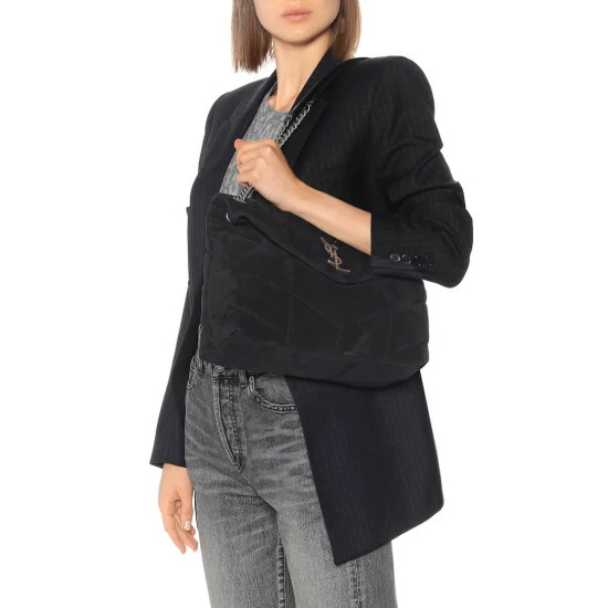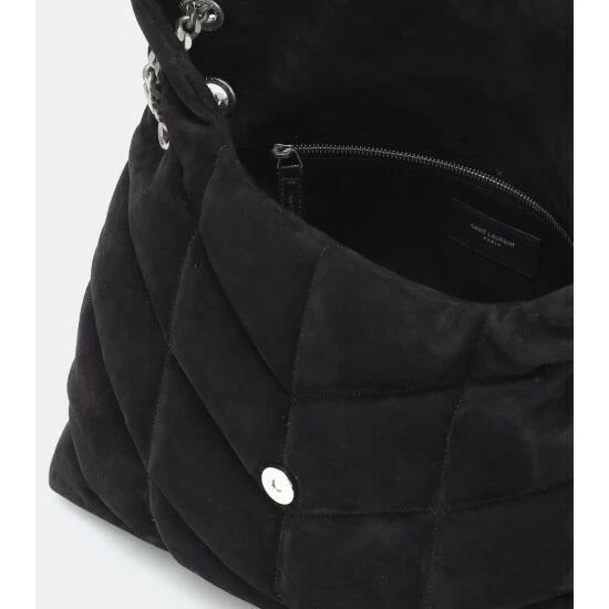Saint Laurent brings volume to its signature silhouette, the Loulou shoulder bag, lending it a luxe quilted finish. Made in Italy from black suede, this style is finished with silver-toned hardware – including the iconic YSL monogram on the front flap.