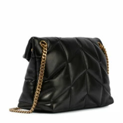 The black Loulou Puffer Small shoulder bag from Saint Laurent is a sophisticated day-to-night companion. Its buttery, quilted calfskin base is treated with a combination of paper printing, which creates a full-grain finish, and a smoothing tanning process. We donโt like to pick favorites, but this design holds a special place in our hearts โ and, with its timeless looks and ever-iconic YSL hardware, we predict it will have the same effect on you.