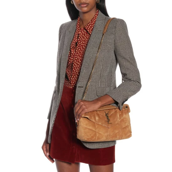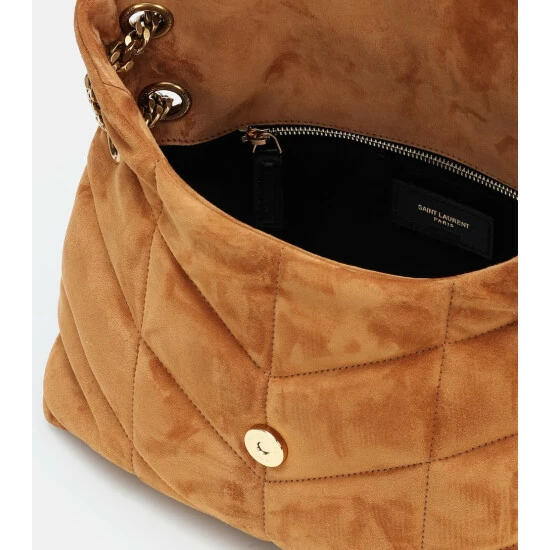 A shoulder bag of plush proportions, this version of the much-adored Loulou Puffer Small from Saint Laurent makes its entrance in tan suede. The perfectly proportioned update for everyday styling, we love its practical mix of top handle and adjustable shoulder strap. The soft fabric lining ensures your most valuable possessions are protected at all times.