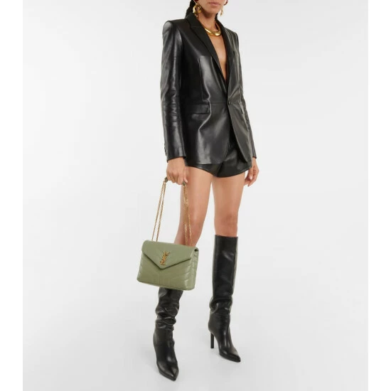 Bring Parisian panache to any look with one of Saint Laurent’s best-loved bags: the Loulou Small, presented here in light green. No attention to detail is spared in the making of this style classic: unique tanning and treatment processes are used to give the suede a soft feel, and a specially designed foam is added to create soft quilting.