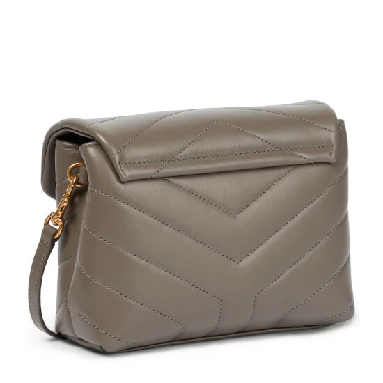 Designed in tribute to one of Saint Laurent’s muses, the dark gray Loulou Toy shoulder bag has gone on to become a style icon itself. The house uses unique tanning and paper-printing processes to give the leather a soft feel and a full-grain look, and adds a specially designed airy foam to create the signature quilting. This design is finished with metallic hardware, including the iconic YSL monogram.