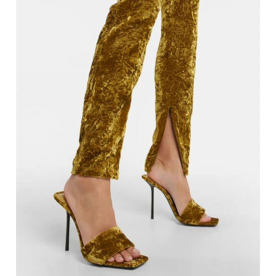 Complete looks on a luxurious note with the Lucky mules from Saint Laurent. They’re made from plush velvet with elegant squared-toe profiles and rest on slim stiletto heels.