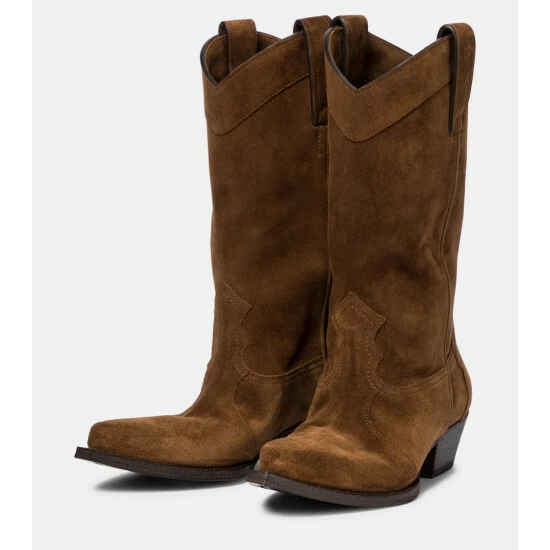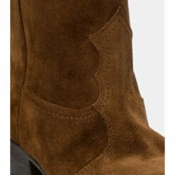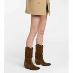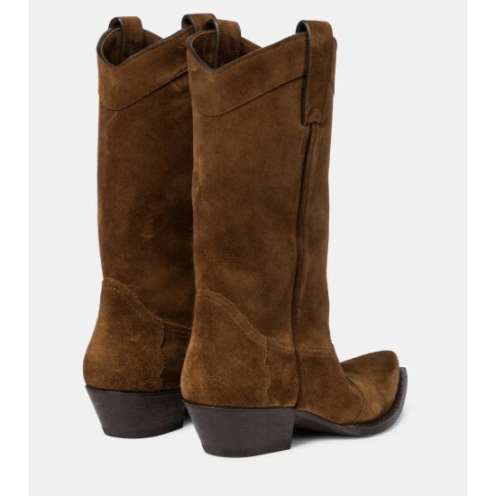 Channel deep-rooted American glamour with these mid-calf Lukas Western boots from Saint Laurent. Made in Italy from supple brown suede, they feature cowboy-inspired stitching and stacked block heels. Team yours with Bermuda shorts for on-trend styling.