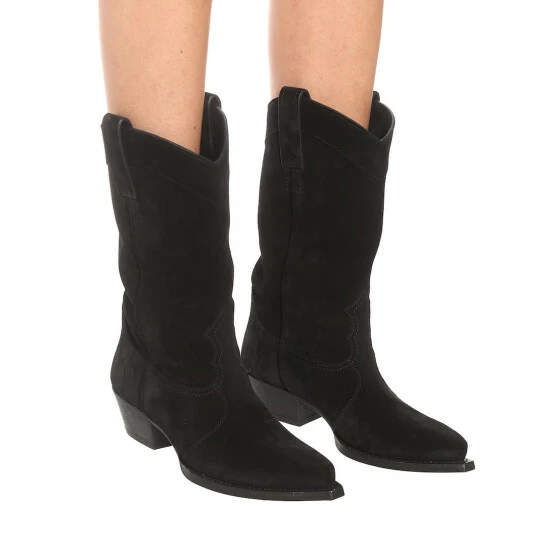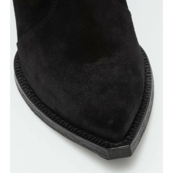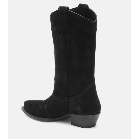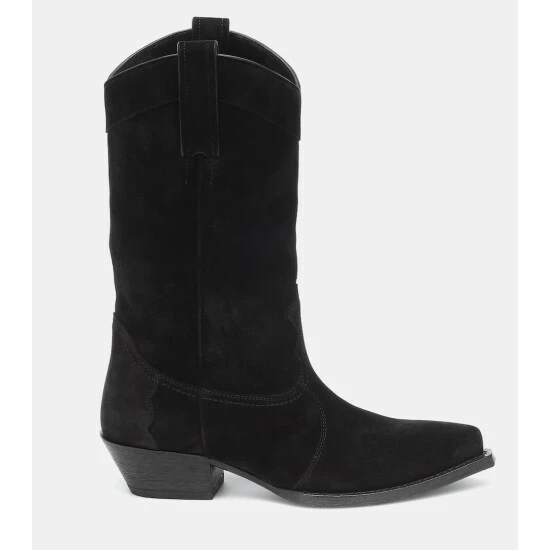 Channel deep-rooted American glamour with these mid-calf Lukas Western boots from Saint Laurent. Cut from smooth black suede, they feature intricate tonal embroidery. Style yours with denim shorts to tap into the brand’s sensual styling.