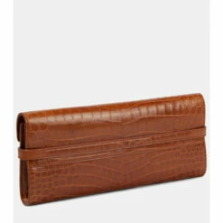 Saint Laurent presents a compact iteration of one of its sleekest styles: the Manhattan. The croc-effect clutch is made from calf leather and finished with golden metal accents.