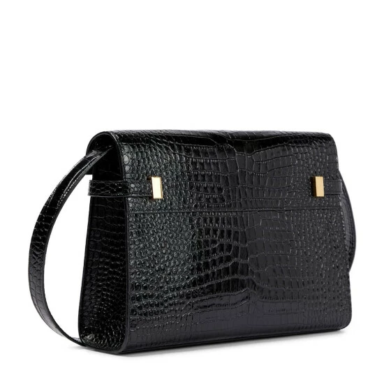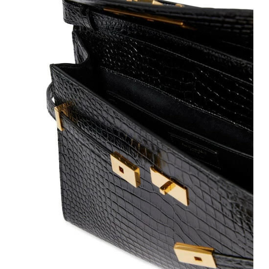 Saint Laurent offers structured elegance with its Manhattan shoulder bag. Made in Italy from crocodile-embossed shiny leather, this large-sized design features golden logo plaque fastening with subtle branding.