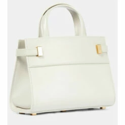 Saint Laurent manifests structured elegance with the nano-sized Manhattan tote. Crafted in Italy from white leather, this bag features a golden-tone logo plaque fastening that offers subtle branding. Carry it by the top handles or go hands-free with the detachable leather straps – depending on your mood.
