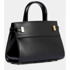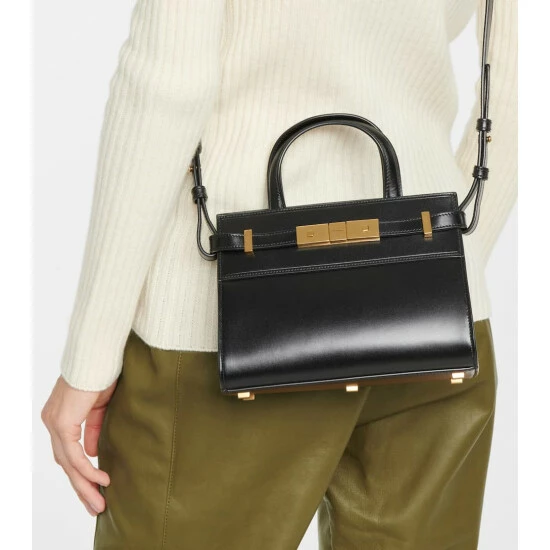 Saint Laurent manifests structured elegance with the Manhattan Nano tote. Crafted in Italy from black leather, this bag features a golden-tone logo plaque fastening that offers subtle branding. Depending on your mood, carry it by the top-handles or go hands-free with the detachable leather straps.