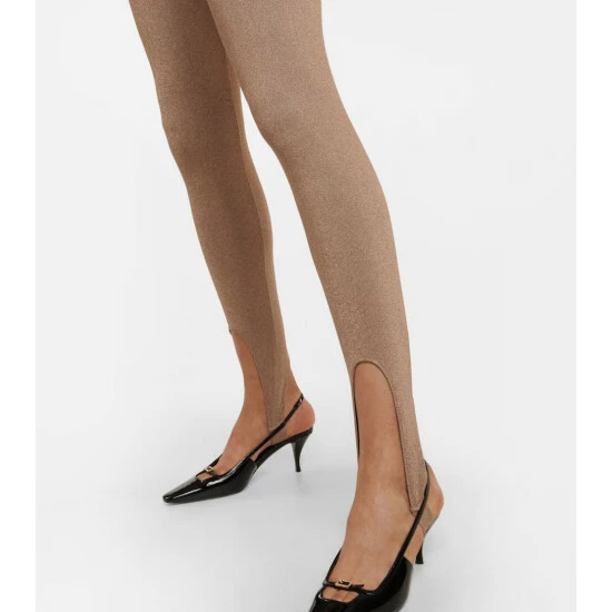 These glamorous leggings from Saint Laurent are made from a metallized knitted fabric. Designed with stirrup cuffs, they have a high-rise and slim fit.
