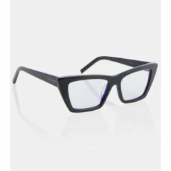Saint Laurent’s Mica sunglasses fuse retro glamour with modern attitude. Crafted in Italy from sleek black acetate, the rectangular cat-eye design features 100% UV protected gray lenses that offer blue light protection. Please note that the color of the carrying case may vary.