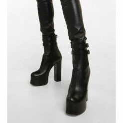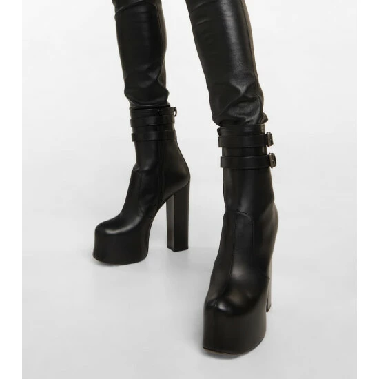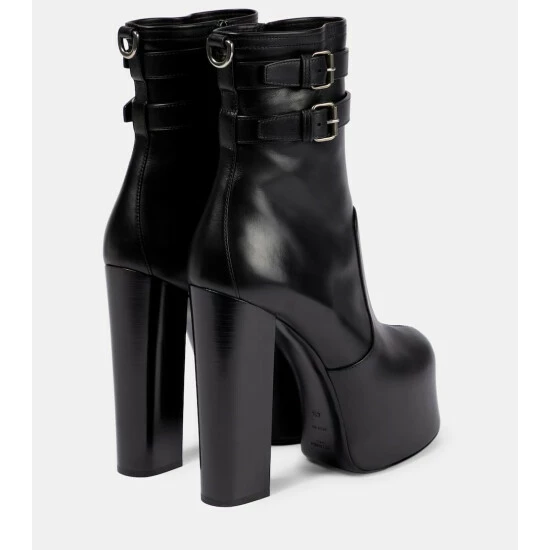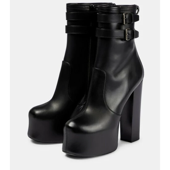 Those with a taste for maximalist footwear will love Saint Laurent’s Mina ankle boots. Made from smooth leather, they have high platforms soles, towering block heels, and buckled strap accents.