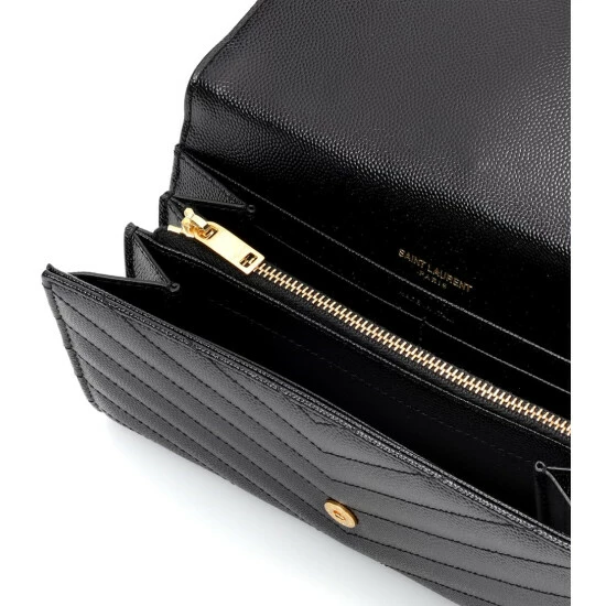 Quilted in a chevron pattern, Saint Laurent’s logo-embellished Monogram Large wallet is a chic handbag essential. Crafted from textured black leather and finished with gold-tone hardware, the envelope-inspired silhouette has two gusseted compartments, one zipped pocket and twelve card slots. It’s spacious, elegant and ideal for days on the go.