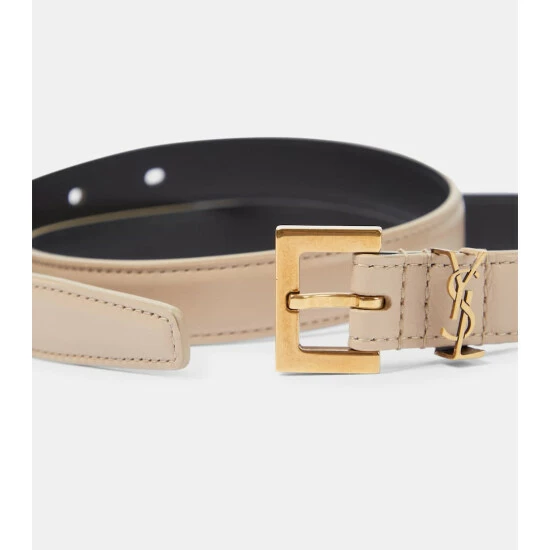 Polish off your look with this classic belt from Saint Laurent. It’s made in Italy from beige leather with a golden metal buckle and the label’s monogram shimmering on the front.