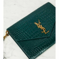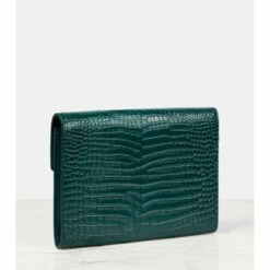 This Monogram clutch from Saint Laurent is a timeless accompaniment to your evening wardrobe. Made from croc-effect leather, this style features a detachable wrist strap and is accented with the YSL logo on the front.