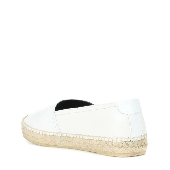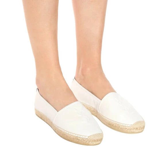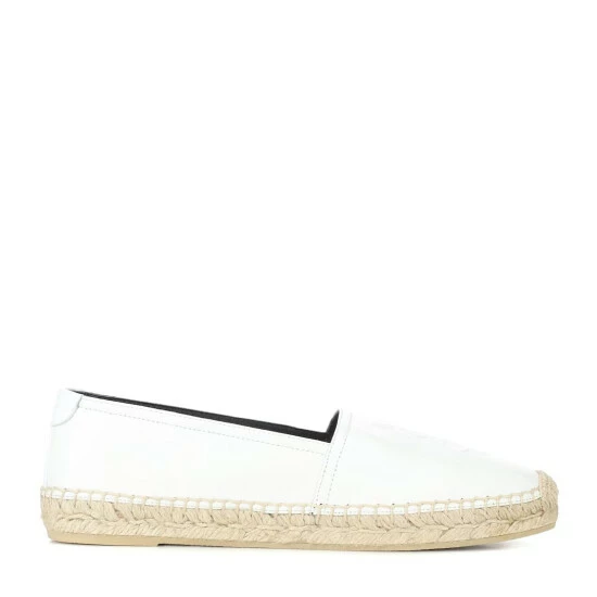 A summer footwear essential receives a glamorous upgrade with the Monogram espadrilles from Saint Laurent. Made in Spain from white lambskin leather with a braided jute midsole and rubber outsole, the classic design is embossed with the interlocking YSL logo at the vamp. Wear yours with distressed denim for a Parisian-cool weekend look.