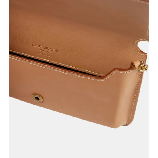 Saint Laurentโs iconic Monogram range welcomes this wallet on chain bag to cover all everyday essentials. It’s made from smooth, brown leather with a detachable chain strap and signature, gold-toned monogram hardware.