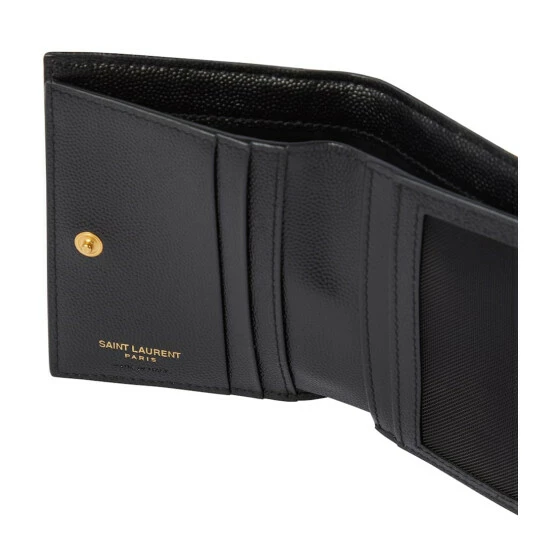 Tackle the everyday in unabated style with this Saint Laurent wallet. Made from chevron-quilted leather, itโs adorned with the label-signature YSL monogram and has a zipped pouch, five slots for cards, and one for bills.