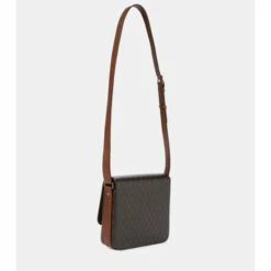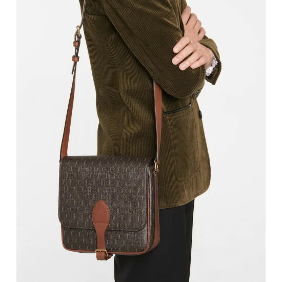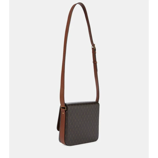 This crossbody bag from Saint Laurent is made from brown leather and canvas with an all-over monogram logo print. Hanging from an adjustable shoulder strap, it has a foldover top with an internal compartment complete with slot pockets.