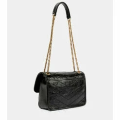 Seasoned Saint Laurent fans will immediately recognize the tonal YSL emblem on the Niki Baby shoulder bag. It’s made from quilted leather that’s been treated to look crinkled for a vintage effect.