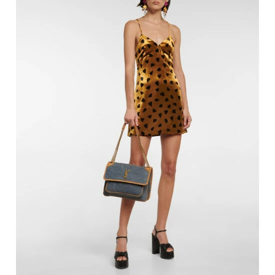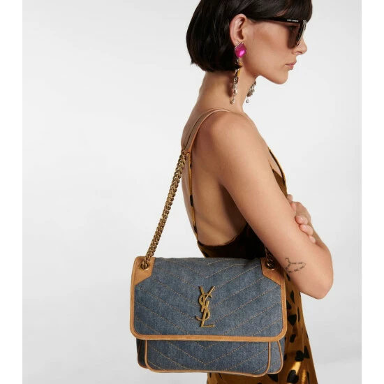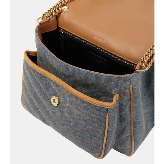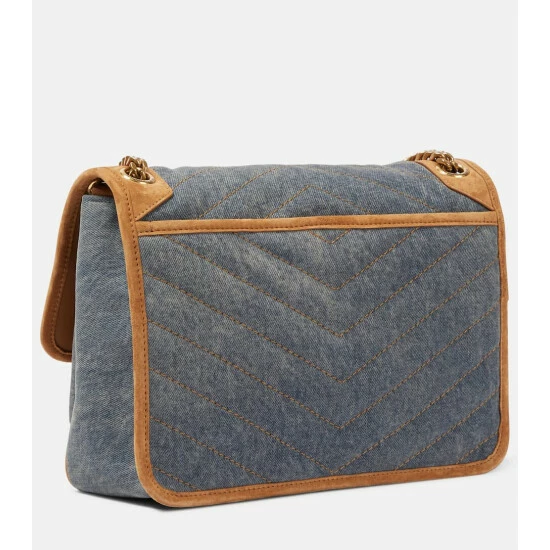 Saint Laurent’s signature Niki Medium shoulder bag is reimagined here in chevron-quilted denim. Made in Italy with suede trims, this capacious, monogram-adorned design opens to reveal two compartments as well as a zipped pocket.