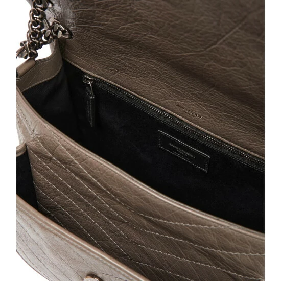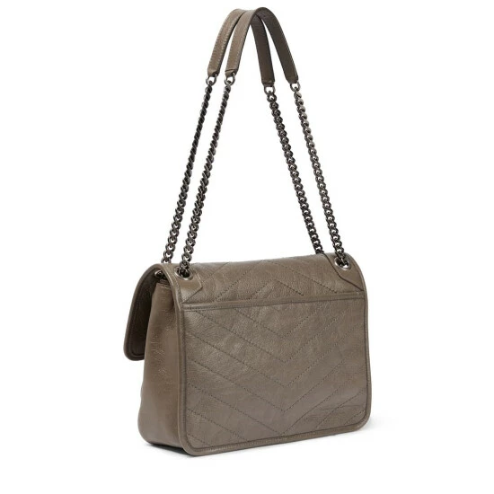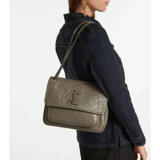 Elevate your everyday looks with the khaki-gray Niki Medium shoulder bag from Saint Laurent. Made from Y-shaped chevron-quilted leather in homage to the label’s monogram, the capacious design reveals two compartments and a zipped pocket. We love the crinkled effect for a touch of vintage charm.