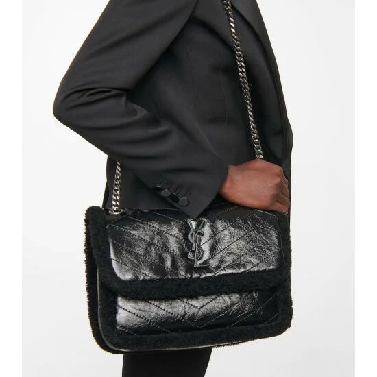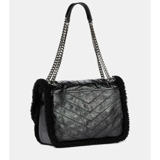Bring Parisian panache to any look with one of Saint Laurentβs best-loved bags: the Niki Medium in black leather and with shearling trims. No attention to detail is spared in the making of this style classic: it’s made in Italy with the label’s classic chevron stitching and a tonal black YSL monogram.