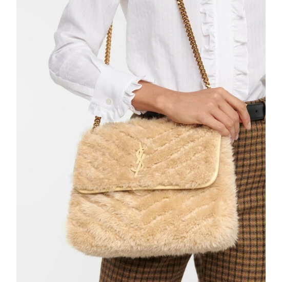 Bring Parisian panache to any look with one of Saint Laurent’s best-loved bags: the Niki Medium in beige shearling. No attention to detail is spared in the making of this style classic: it’s made in Italy with the label’s classic chevron stitching and the golden YSL monogram.