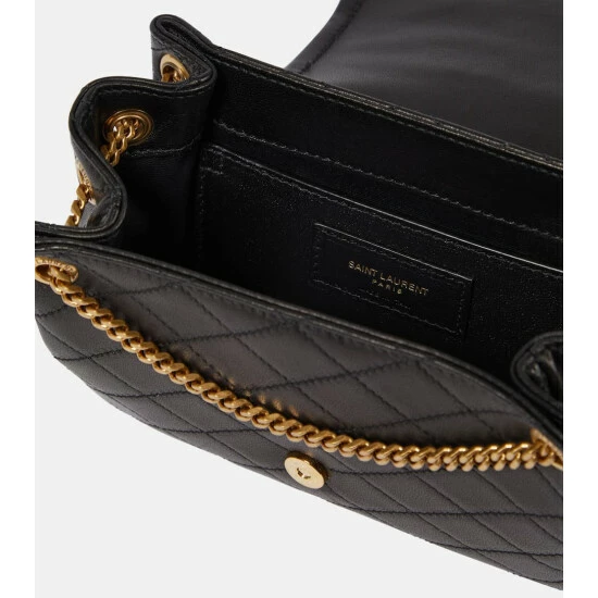 Saint Laurent’s new-season offerings are ever-elegant staples, as evidenced by the Nolita Mini crossbody bag. It’s made from buttery nappa leather which is partially diamond-quilted for durable wear, and accented with the label’s signature antique-golden YSL logo.