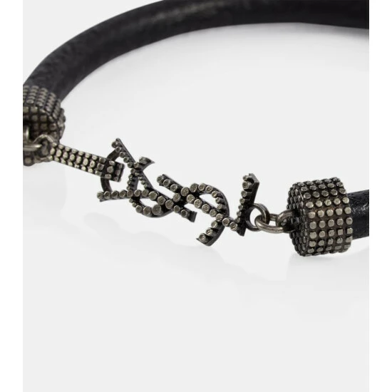 The Opyum bracelet from Saint Laurent will finish off any look with an edgy twist. Made in Italy from black calf leather, the piece features the YSL logo plaque and studded detailing.