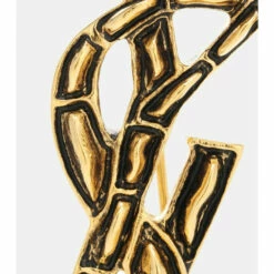 Wear your favorite brand anywhere with this Opyum YSL brooch from Saint Laurent. Crafted in Italy from golden-toned brass, it is lightly textured with black accents for a 3D effect that is sure to catch every eye.