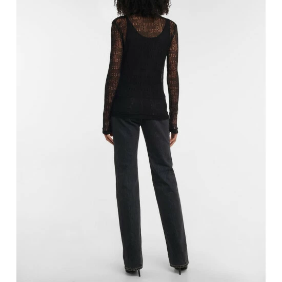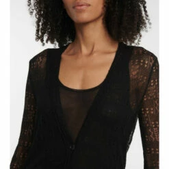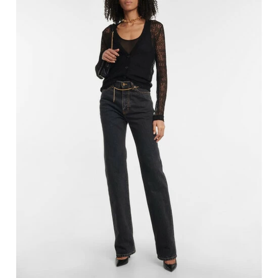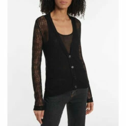 Layer your look with this fine cardigan from Saint Laurent. The semi-sheer piece is knitted with an all-over geometric pattern and finished with a deep V-neck and buttoned front.