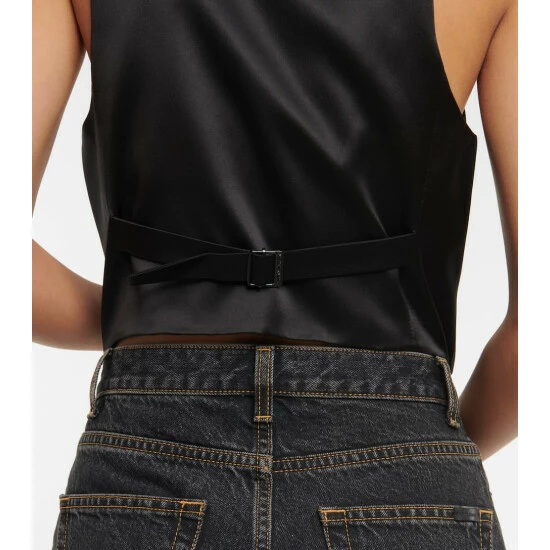 A legion of Saint Laurent’s muses were known to sport designs like this vest – and now you can, too. The pinstripe style is made from wool and features an adjustable sliding belt at the back.