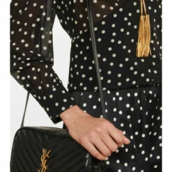 Saint Laurent proves that Parisian style is best in black and white with this polka-dot blouse. It’s cut from sheer silk georgette with a gathered V-neck and a buttoned front for a flattering fit.