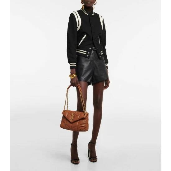Polish off any ensemble with the sophisticated Puffer Small shoulder bag from Saint Laurent. Made from lambskin, it hangs from a gold-toned chain strap that can be doubled up for close-to-the-shoulder carry or extended for crossbody wear.