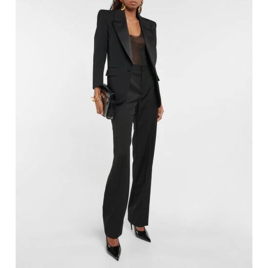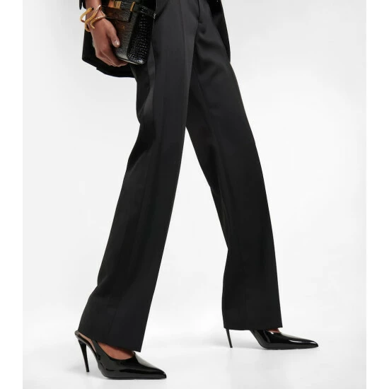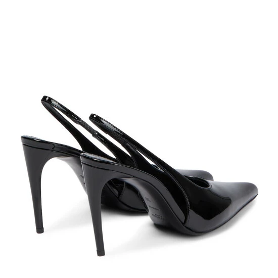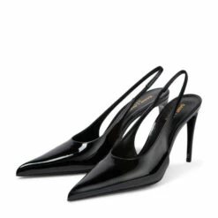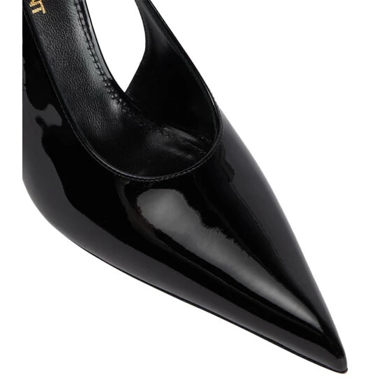 The Pulp pumps from Saint Laurent are made from patent leather. They feature pointed toes, slingback straps, and high stiletto heels.