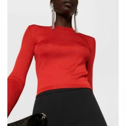 Luxe layering starts with this ribbed-knit jersey sweater from Saint Laurent. It is crafted to a fitted silhouette with a semi-sheer look – finished with a gold-tone monogram on the hem.
