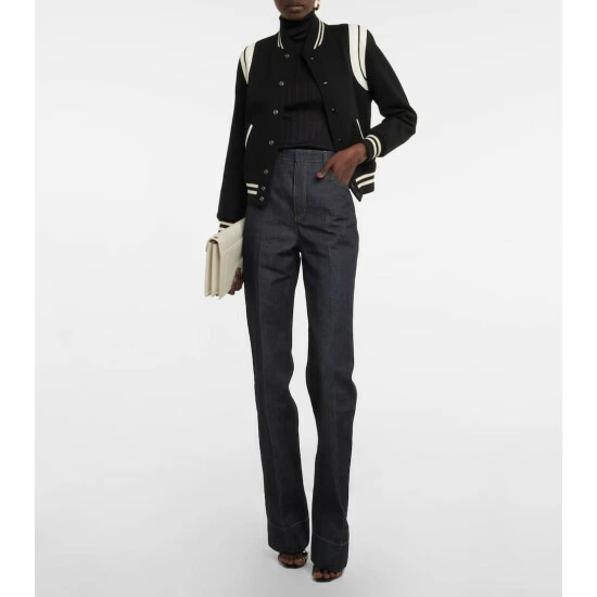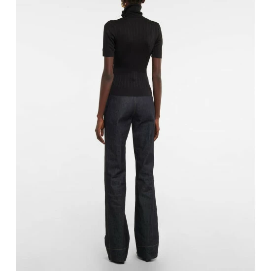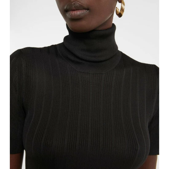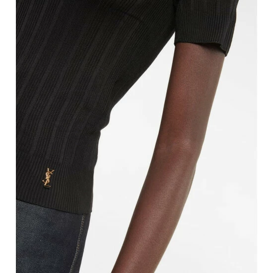 Invest in your wardrobe essentials with this turtleneck top from Saint Laurent. It’s made from ribbed-knit silk with a golden monogram hardware at one hip.
