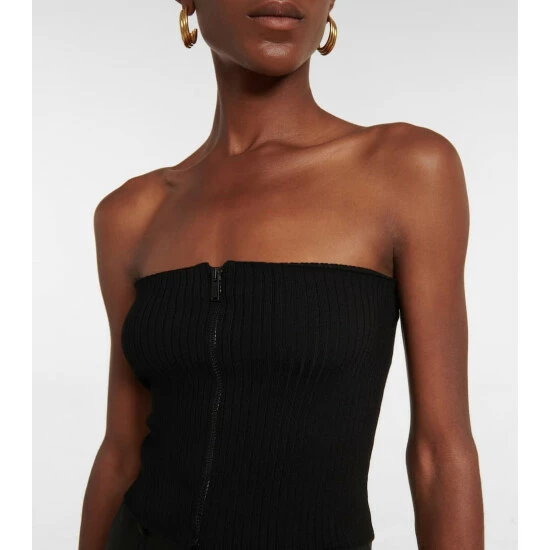 This bustier from Saint Laurent has a zipped front. Knitted from wool-blend yarn, it has a wide ribbed pattern.