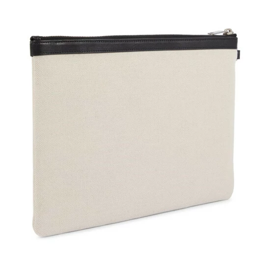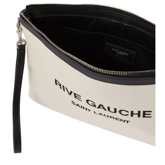 The Rive Gauche pouch from Saint Laurent pays homage to the label’s ready-to-wear beginnings. Made from white canvas, it’s trimmed with contrast leather and a detachable wristlet.