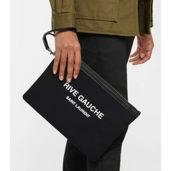 The Rive Gauche pouch from Saint Laurent pays homage to the label’s ready-to-wear beginnings. Made from cotton canvas, it’s trimmed with tonal calf leather and a detachable wristlet. Take yours from desk to dinner next to sharp suiting.