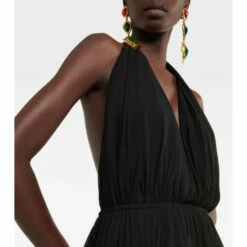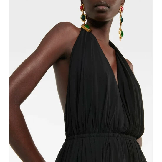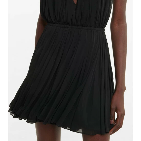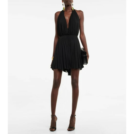 This minidress from Saint Laurent is equal parts alluring and sophisticated. Made from black semi-sheer voile fabric, the LBD features a plunging V-neck, a ruched bodice, and an elasticated waist.