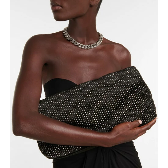 The Sade Large clutch from Saint Laurent is a most stylish update of a classic. Made in Italy from diamond-quilted velvet, it’s entirely covered in crystals and detailed with iconic YSL hardware at the back.