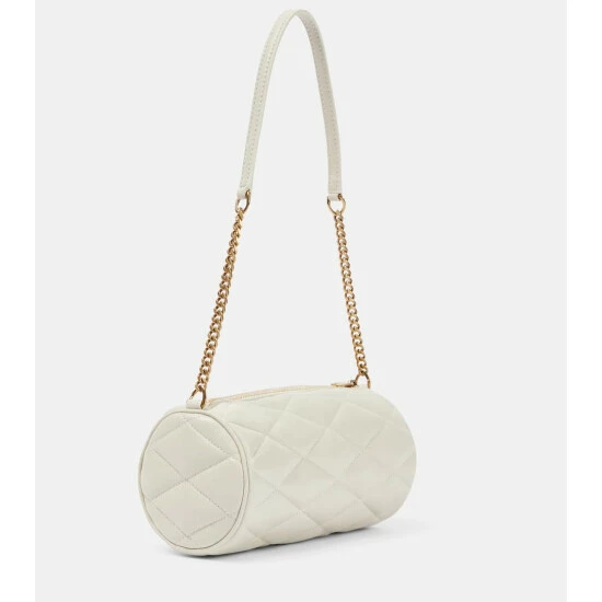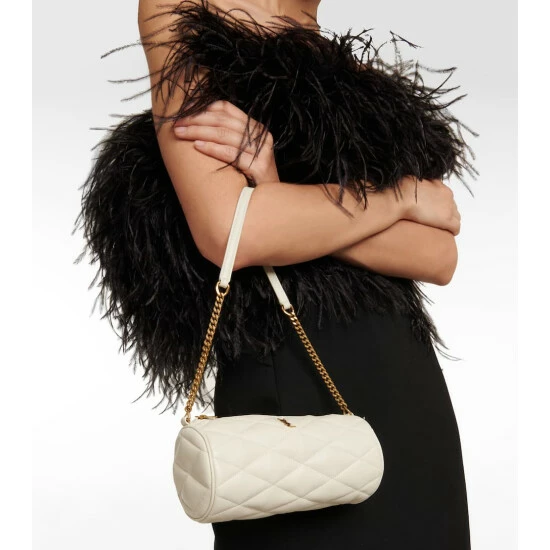 Saint Laurent continues to appeal to the modern minimalist with designs like the Sade Mini shoulder bag. Made in Italy from diamond-quilted lambskin leather to a cylindrical silhouette, it’s accented with gold-toned interlocking YSL initials.