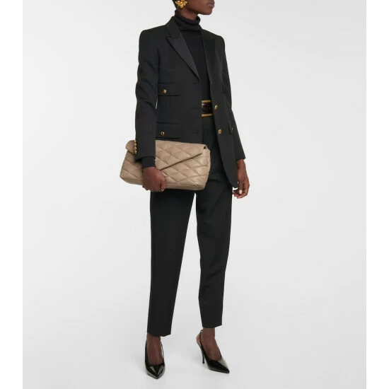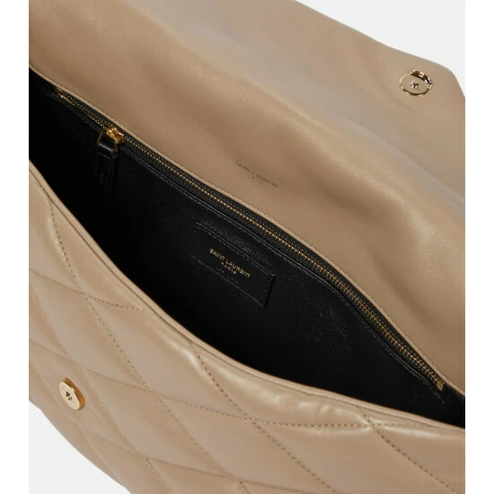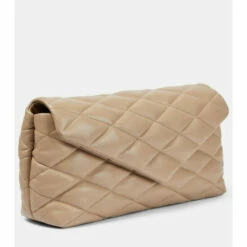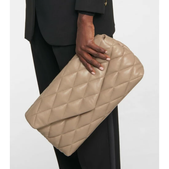 With its quilted and padded construction, Saint Laurent’s beige Sade Puffer clutch will add texture to evening looks. Made from leather, it has a foldover top with magnetic closures and an internal zipped pocket and card slots.