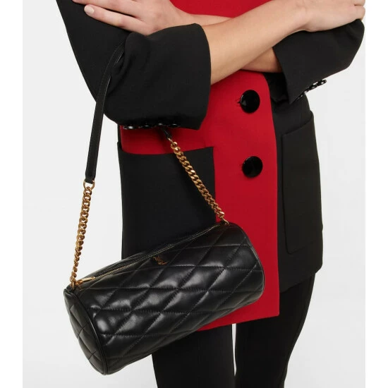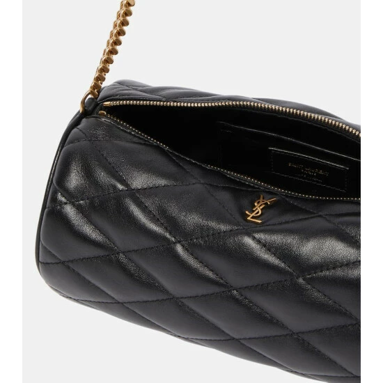 The Sade Small shoulder bag from Saint Laurent has a trendy baguette silhouette. Made in Italy from diamond-quilted lambskin leather in black, it’s accented with the brand’s iconic YSL hardware.