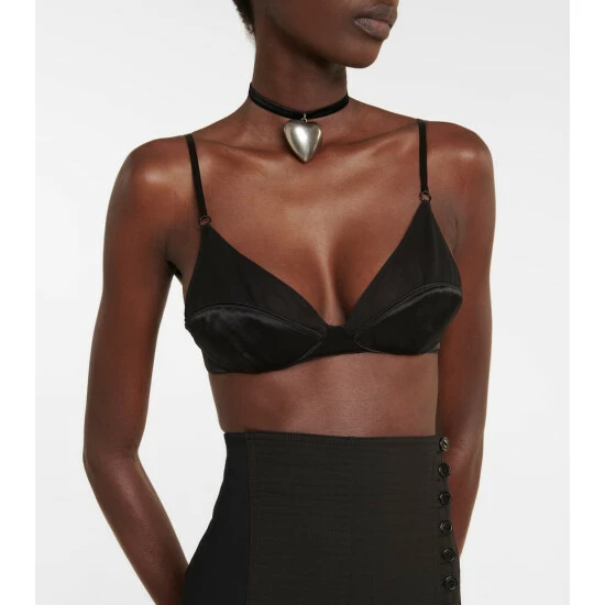 Make your first layer just as glamorous as the rest of your ensemble with this bralette from Saint Laurent. The cups are made from satin silk featuring semi-sheer trims.