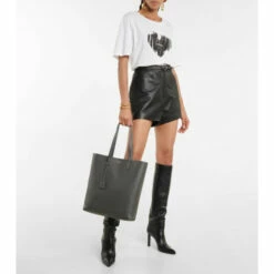 Simplify your life with the Shopping N/S tote bag from Saint Laurent. Made from gray leather, it has top handles for easy carrying and a spacious interior to store everything you need for a hybrid lifestyle.